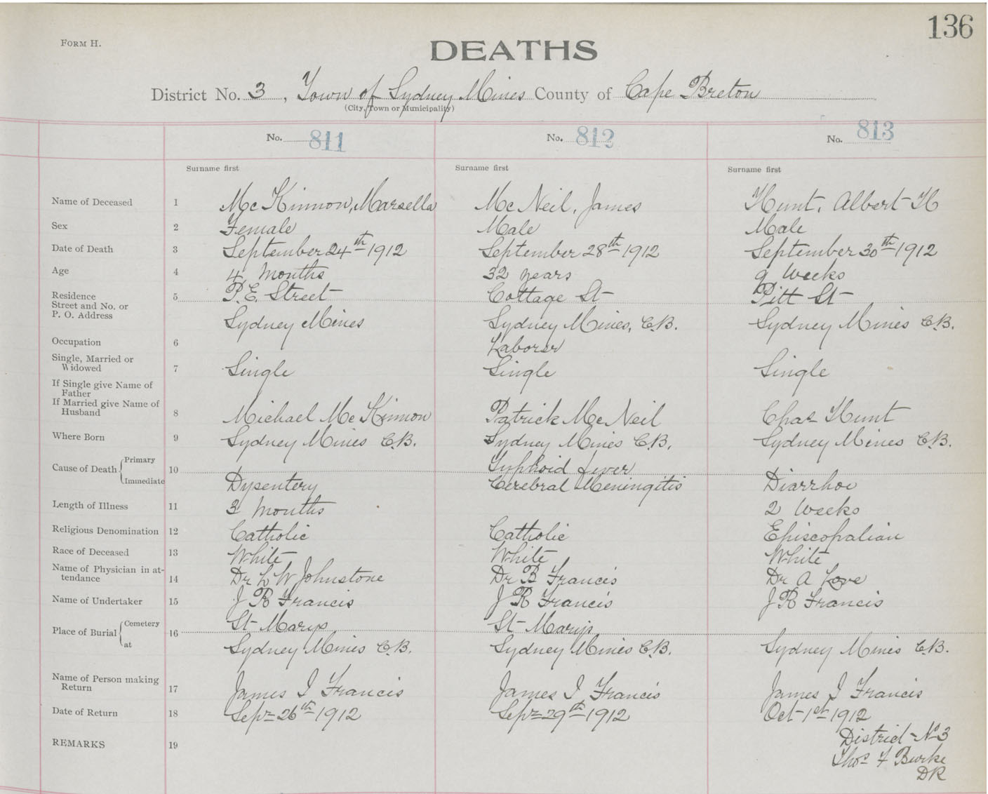Death Registration: Year: 1912 book: 22 page: 136 number: 813