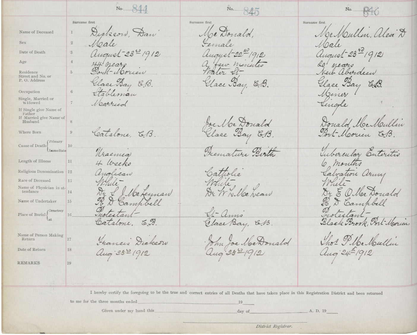 Death Registration: Year: 1912 book: 22 page: 141 number: 844