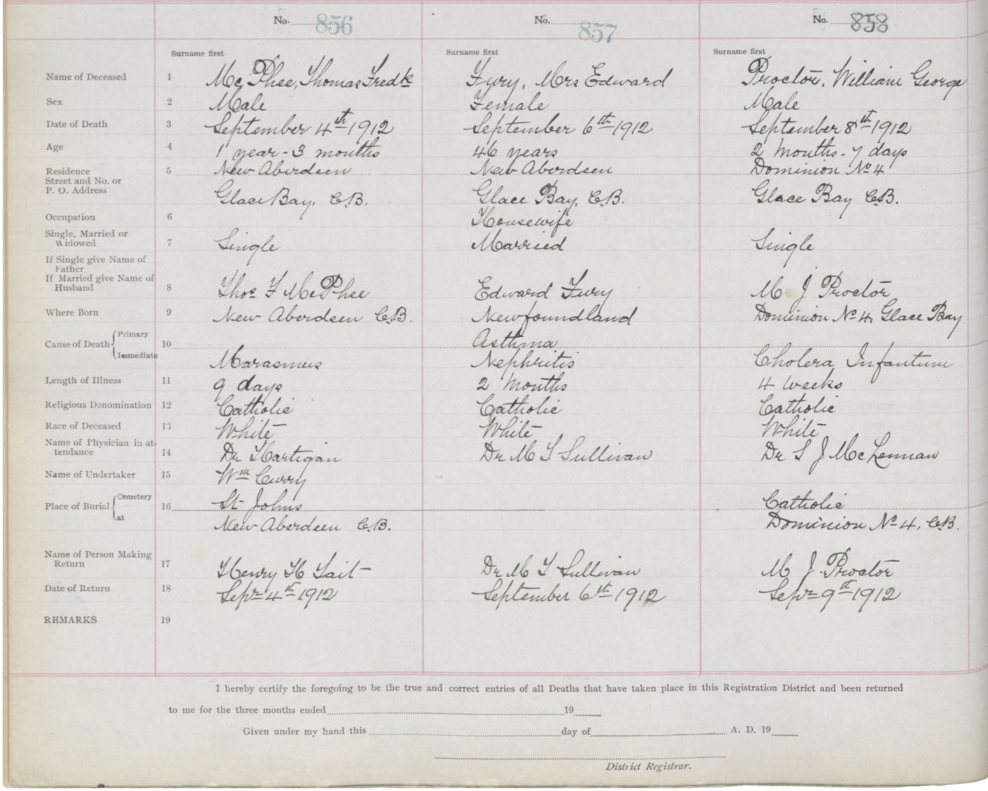 Death Registration: Year: 1912 book: 22 page: 143 number: 856