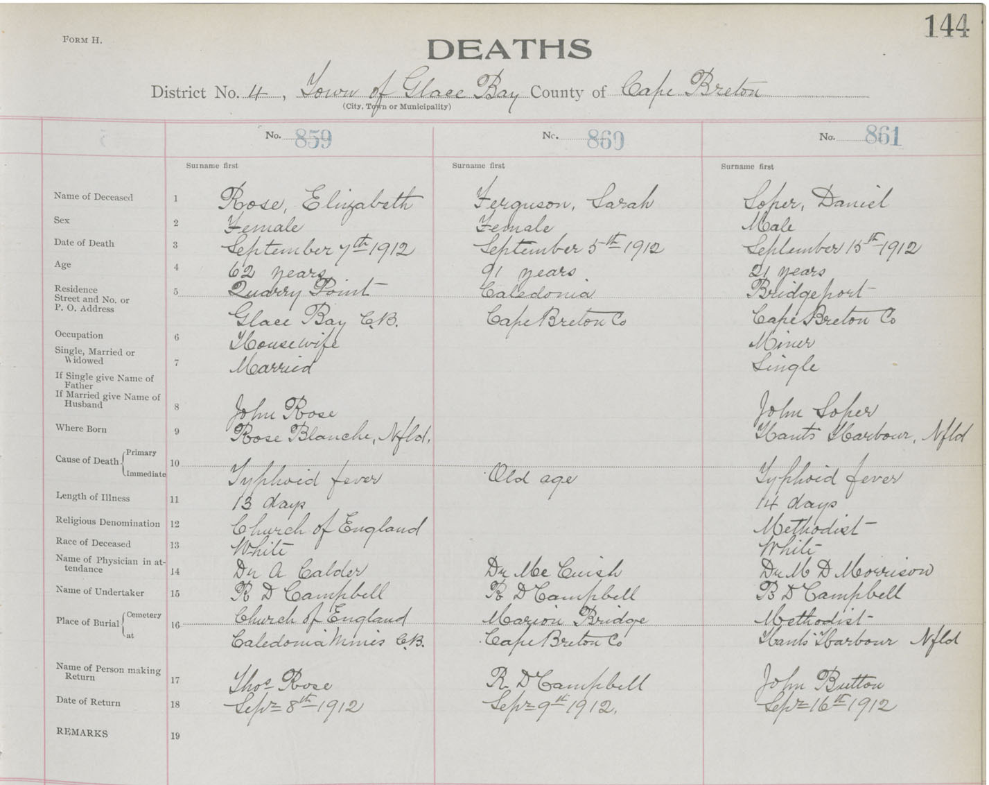 Death Registration: Year: 1912 book: 22 page: 144 number: 859