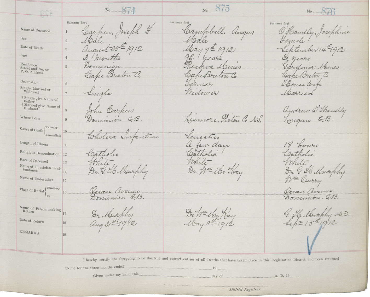 Death Registration: Year: 1912 book: 22 page: 146 number: 874
