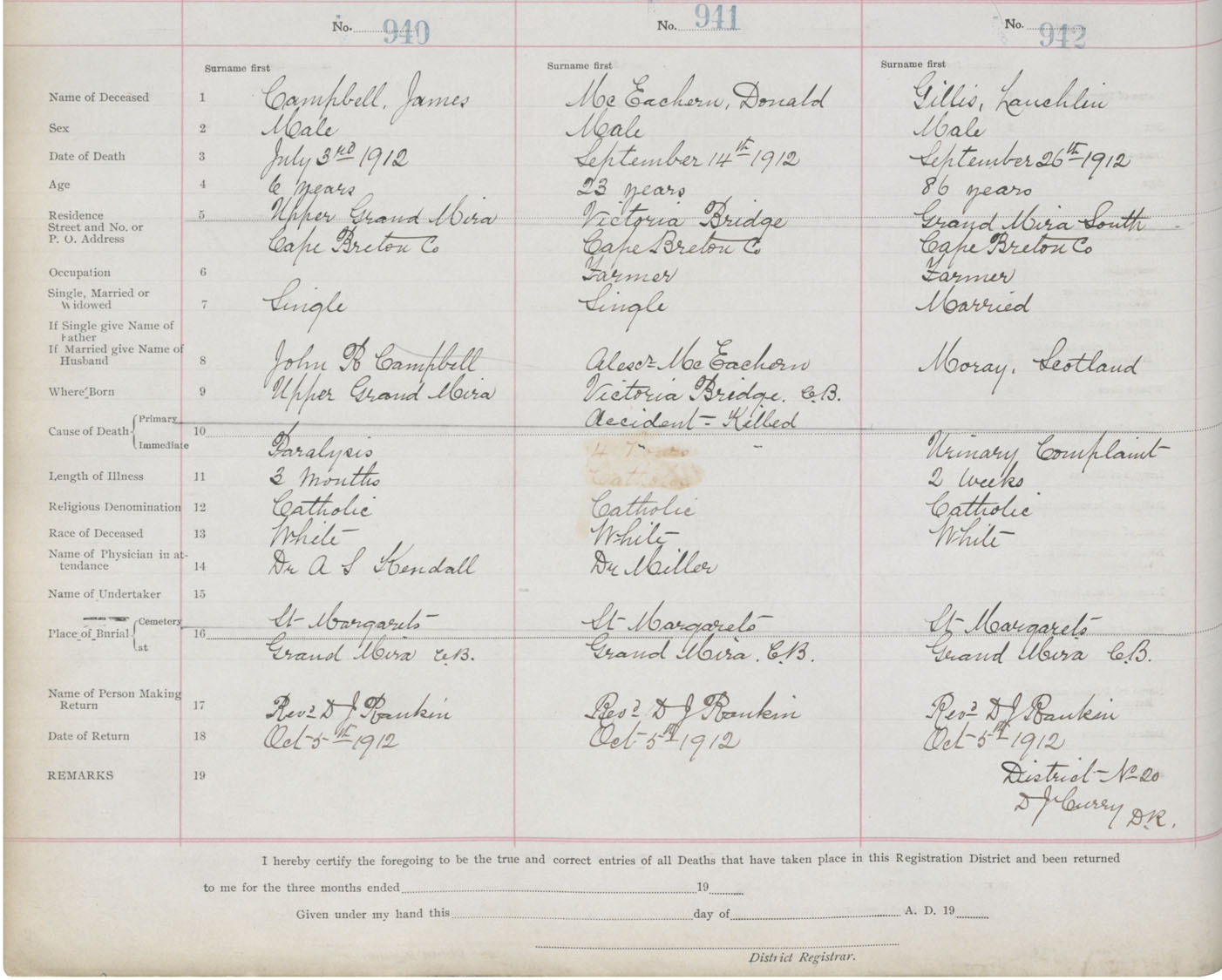 Death Registration: Year: 1912 book: 22 page: 157 number: 942