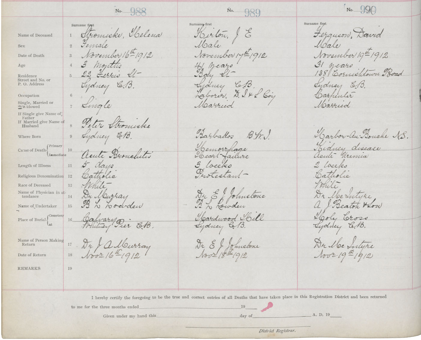 Death Registration: Year: 1912 book: 22 page: 165 number: 990