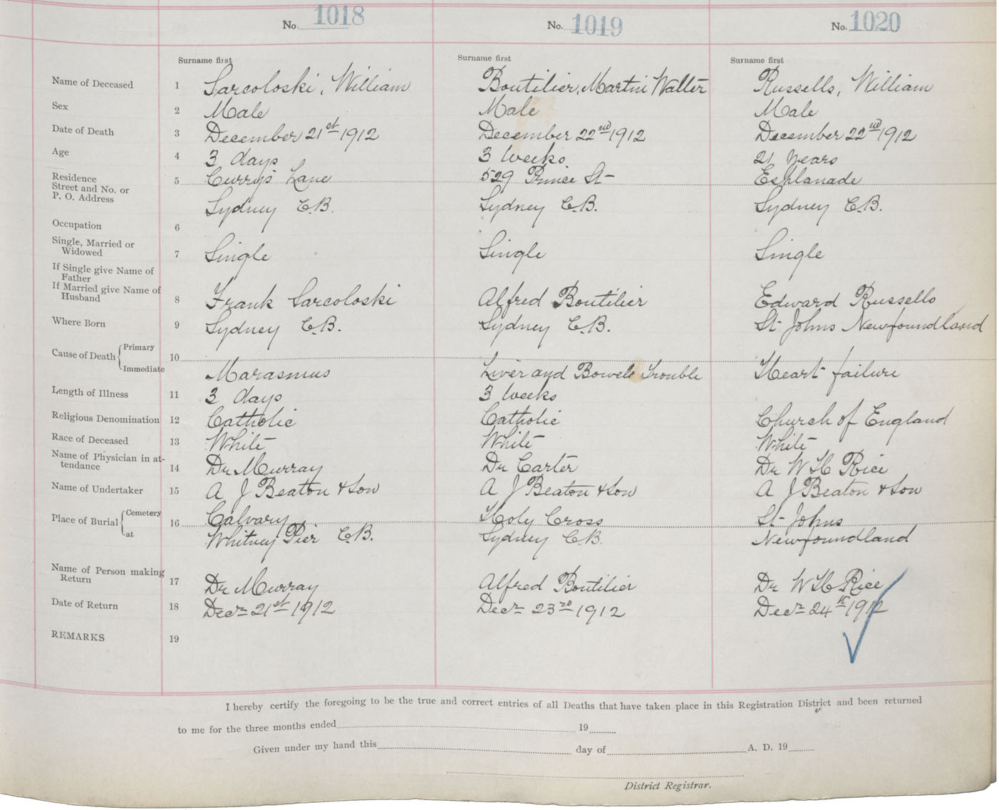 Death Registration: Year: 1912 book: 22 page: 170 number: 1018