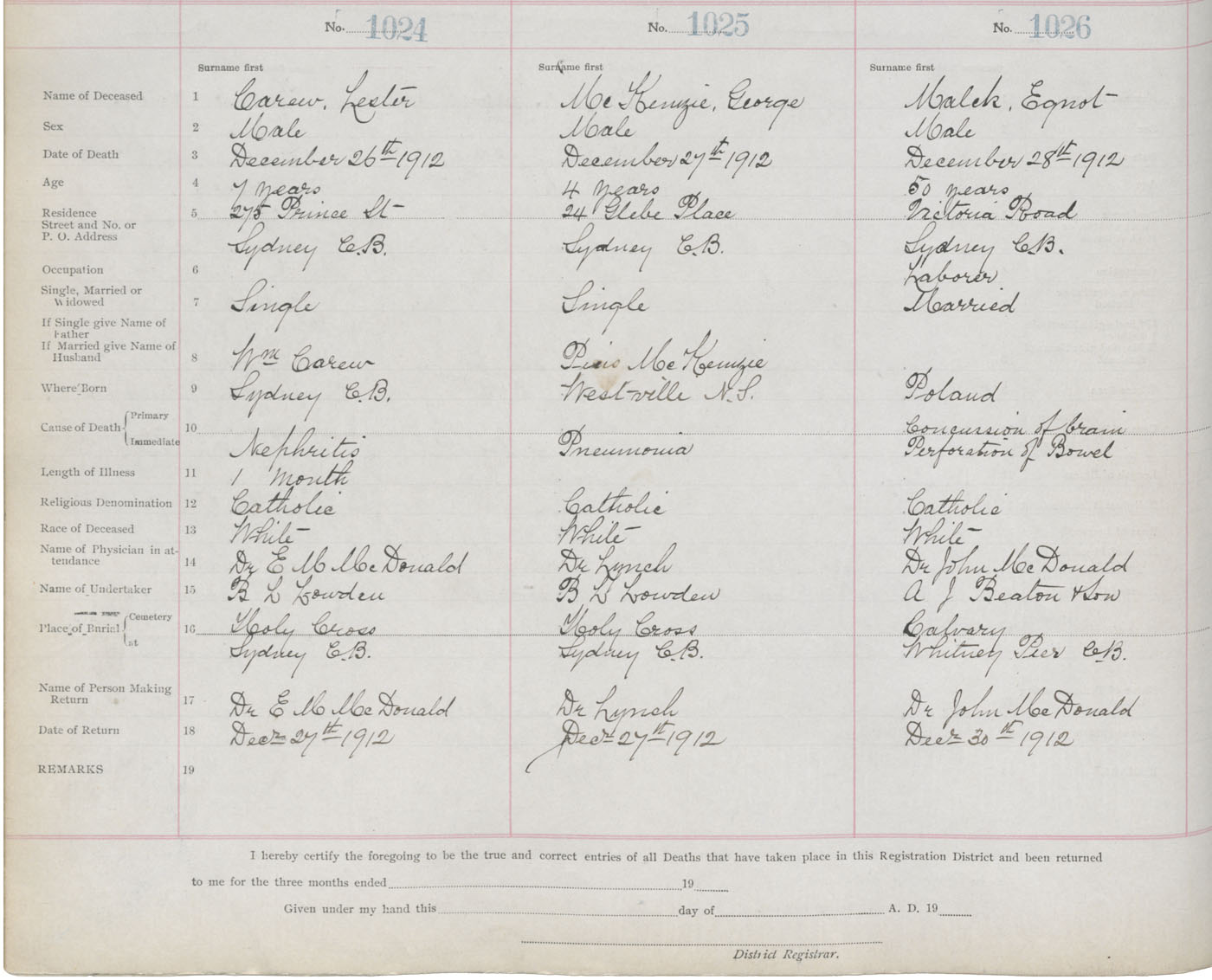 Death Registration: Year: 1912 book: 22 page: 171 number: 1024