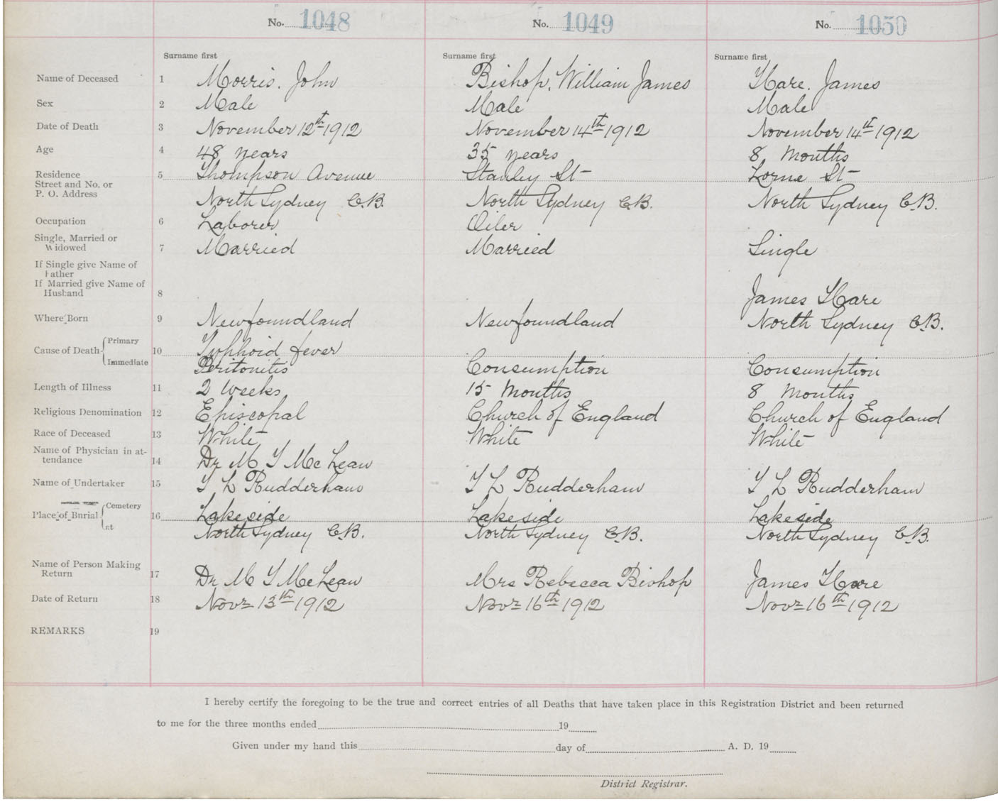 Death Registration: Year: 1912 book: 22 page: 175 number: 1048