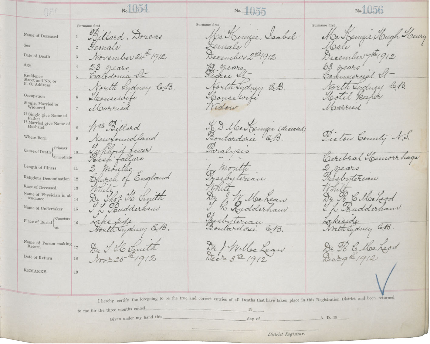 Death Registration: Year: 1912 book: 22 page: 176 number: 1054
