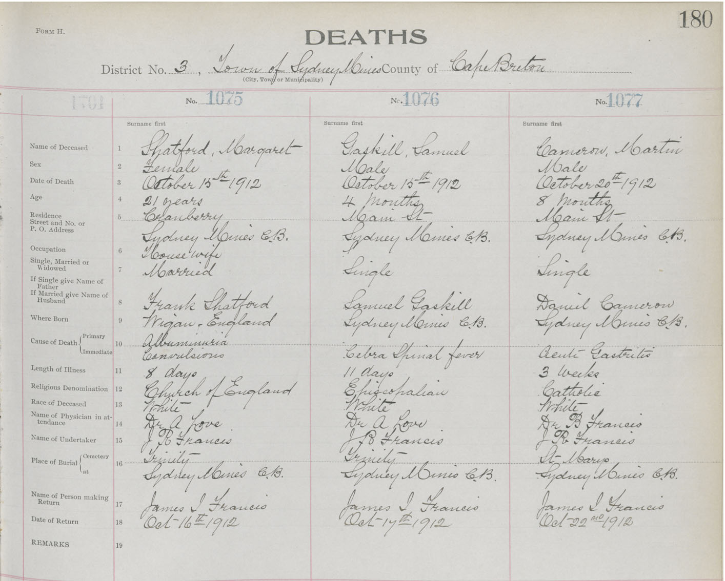 Death Registration: Year: 1912 book: 22 page: 180 number: 1075