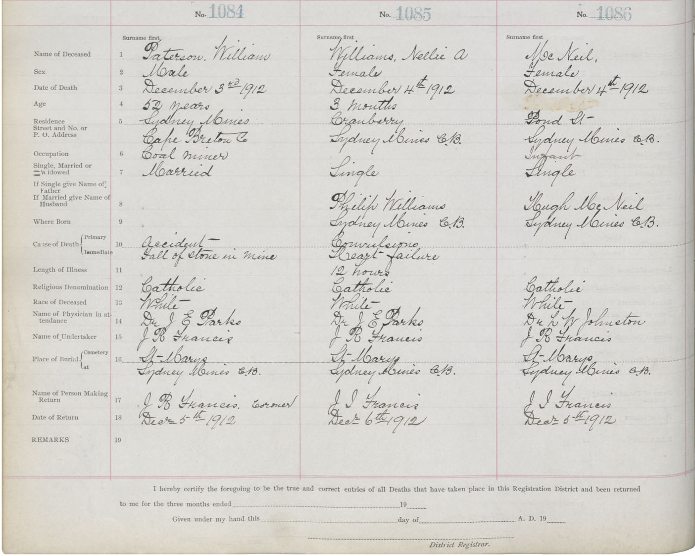Death Registration: Year: 1912 book: 22 page: 181 number: 1084