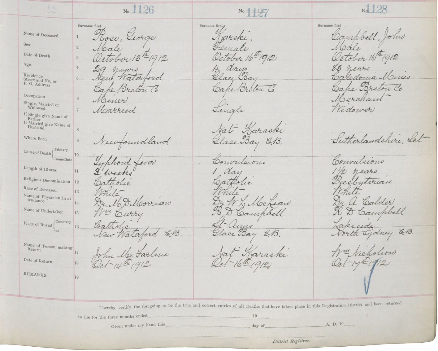 Death Registration: Year: 1912 book: 22 page: 188 number: 1126