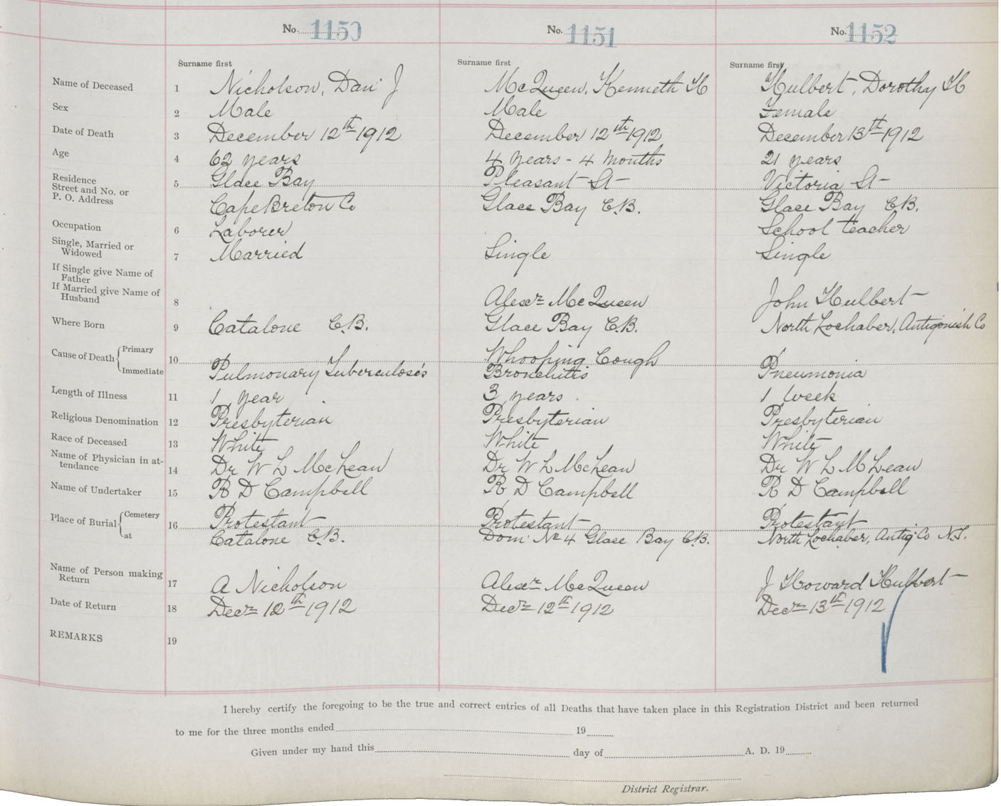 Death Registration: Year: 1912 book: 22 page: 192 number: 1152
