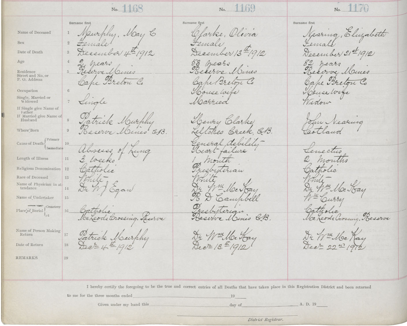 Death Registration: Year: 1912 book: 22 page: 195 number: 1170