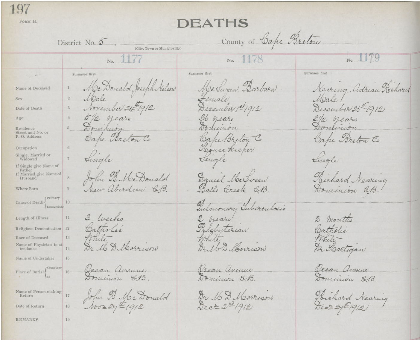 Death Registration: Year: 1912 book: 22 page: 197 number: 1179