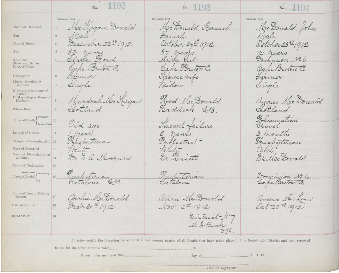 Death Registration: Year: 1912 book: 22 page: 199 number: 1194