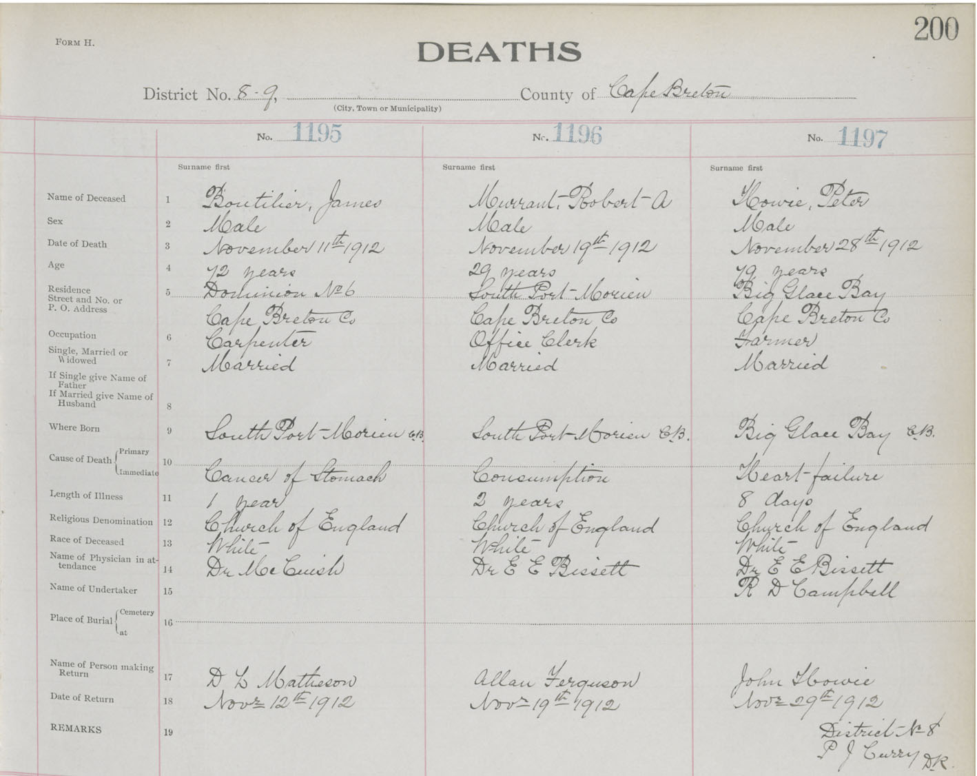 Death Registration: Year: 1912 book: 22 page: 200 number: 1197
