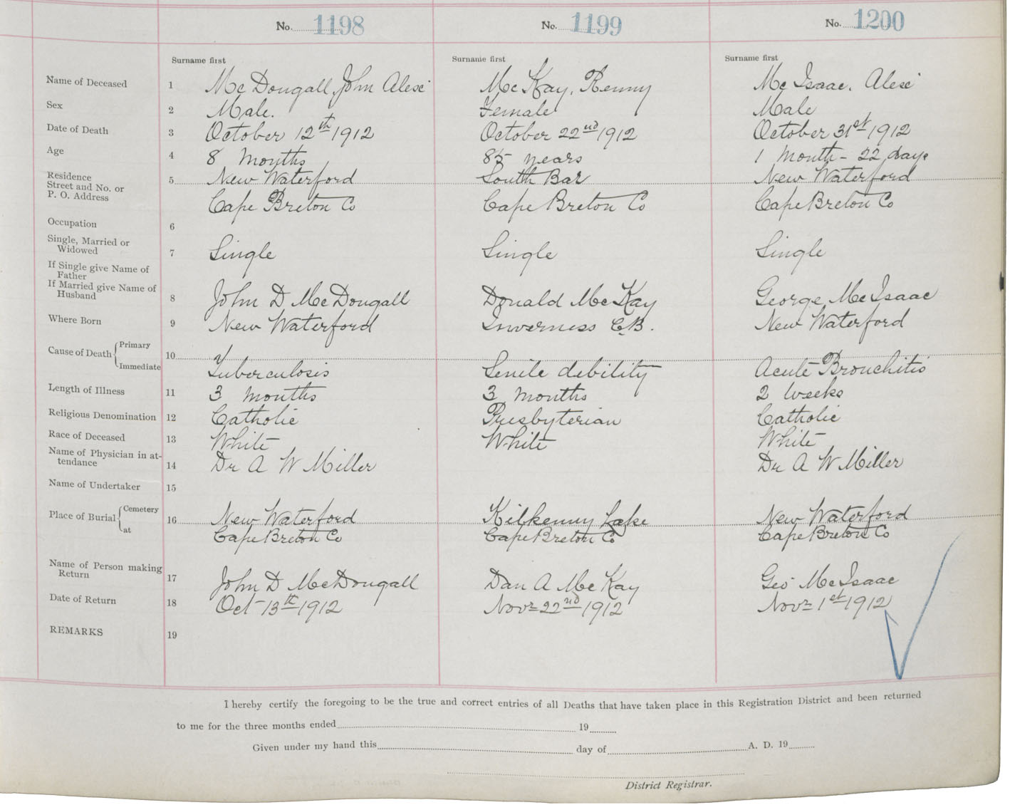 Death Registration: Year: 1912 book: 22 page: 200 number: 1200
