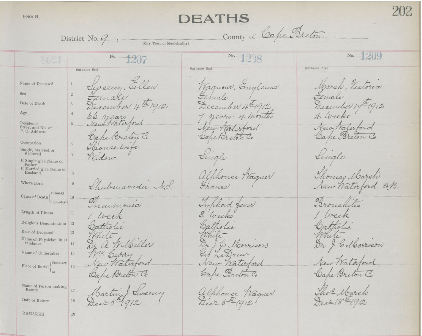 Death Registration: Year: 1912 book: 22 page: 202 number: 1209