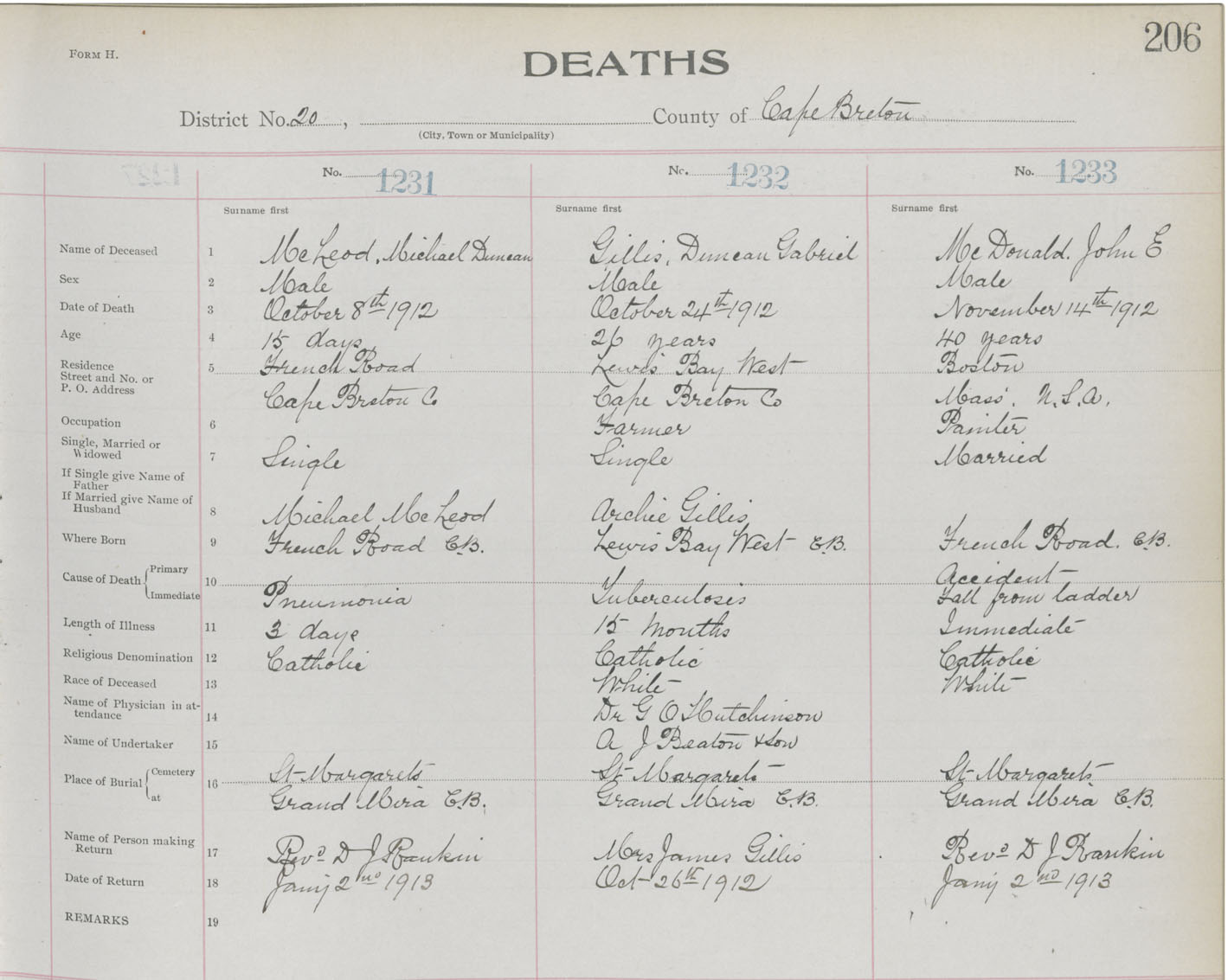Death Registration: Year: 1912 book: 22 page: 206 number: 1233