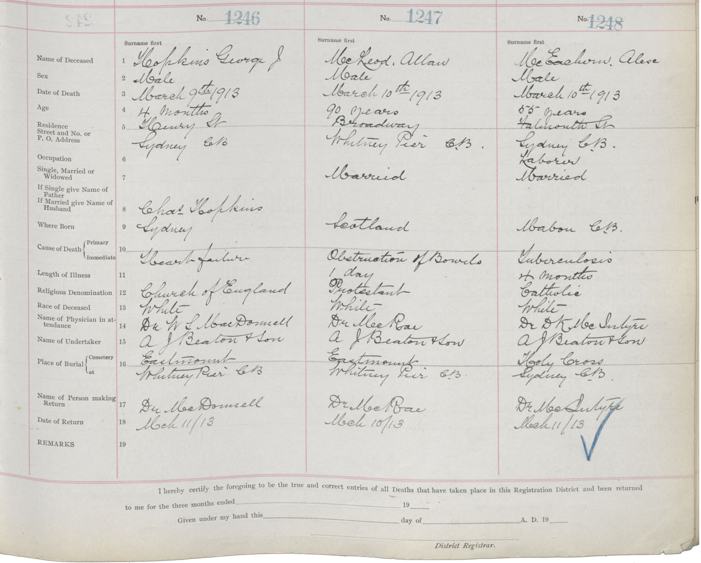 Death Registration: Year: 1913 book: 22 page: 208 number: 1248