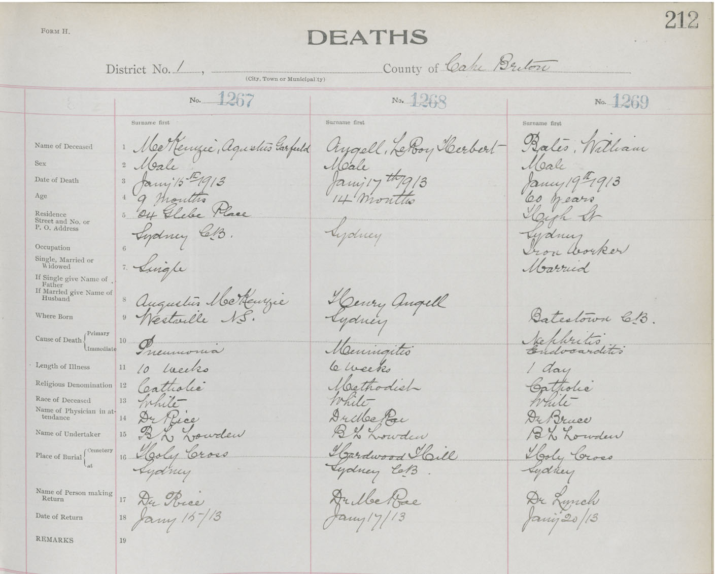 Death Registration: Year: 1913 book: 22 page: 212 number: 1269