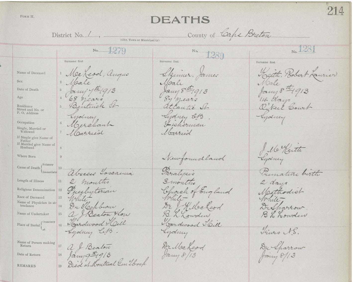 Death Registration: Year: 1913 book: 22 page: 214 number: 1279