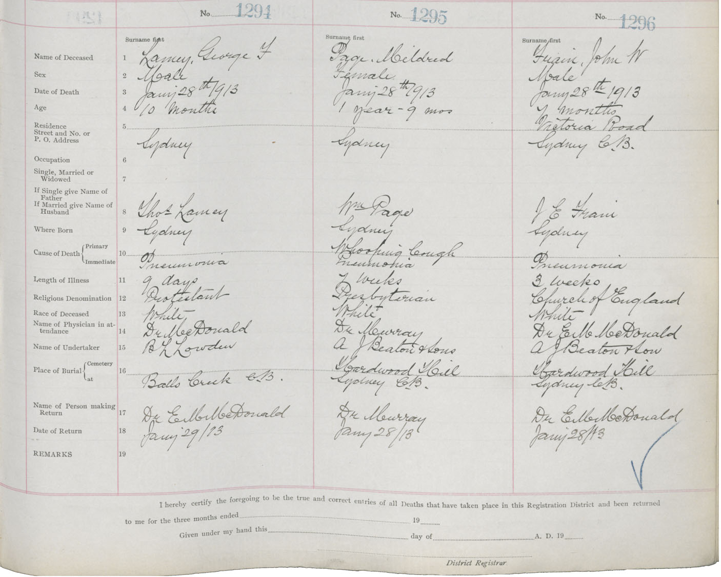 Death Registration: Year: 1913 book: 22 page: 216 number: 1294