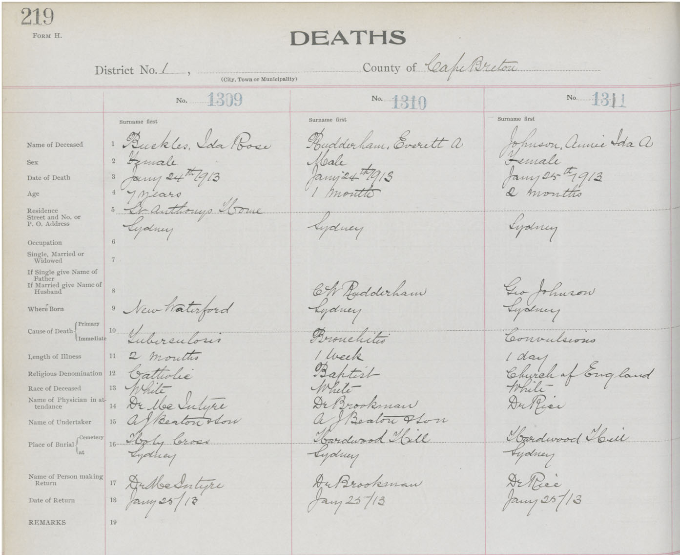 Death Registration: Year: 1913 book: 22 page: 219 number: 1309