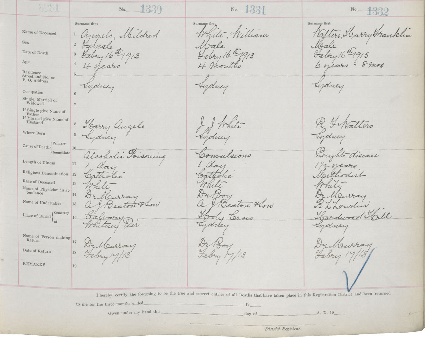 Death Registration: Year: 1913 book: 22 page: 222 number: 1330