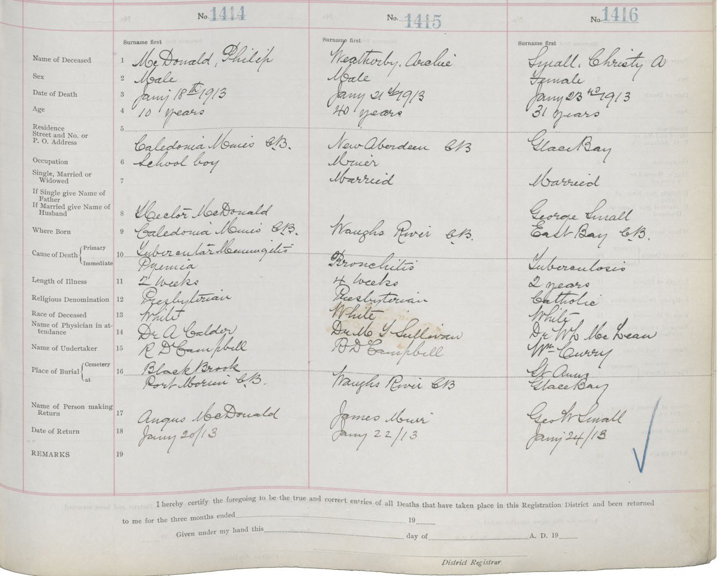 Death Registration: Year: 1913 book: 22 page: 236 number: 1414