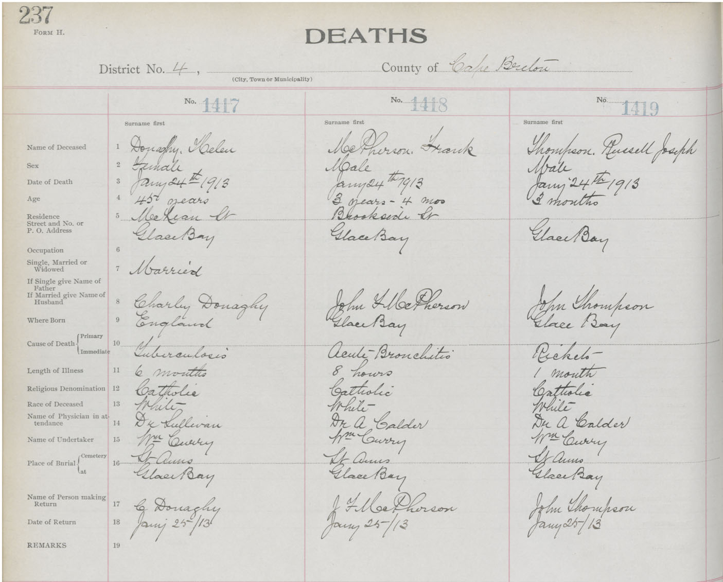 Death Registration: Year: 1913 book: 22 page: 237 number: 1417