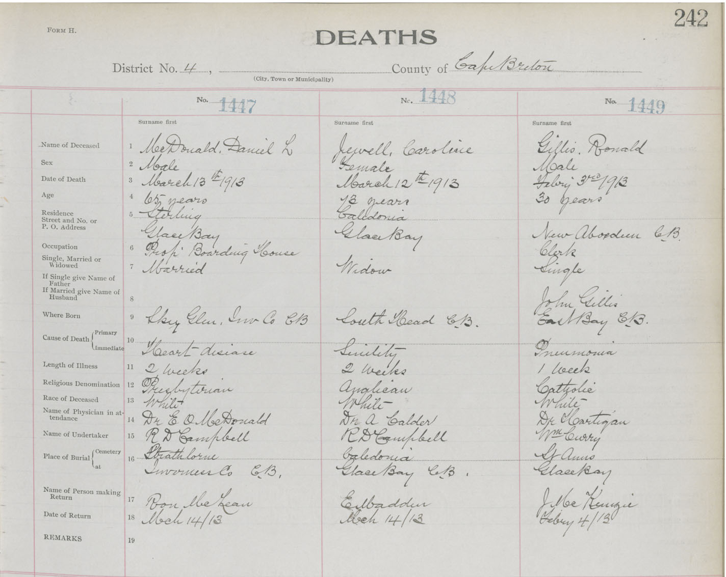Death Registration: Year: 1913 book: 22 page: 242 number: 1449