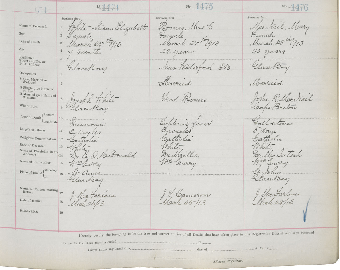 Death Registration: Year: 1913 book: 22 page: 246 number: 1476