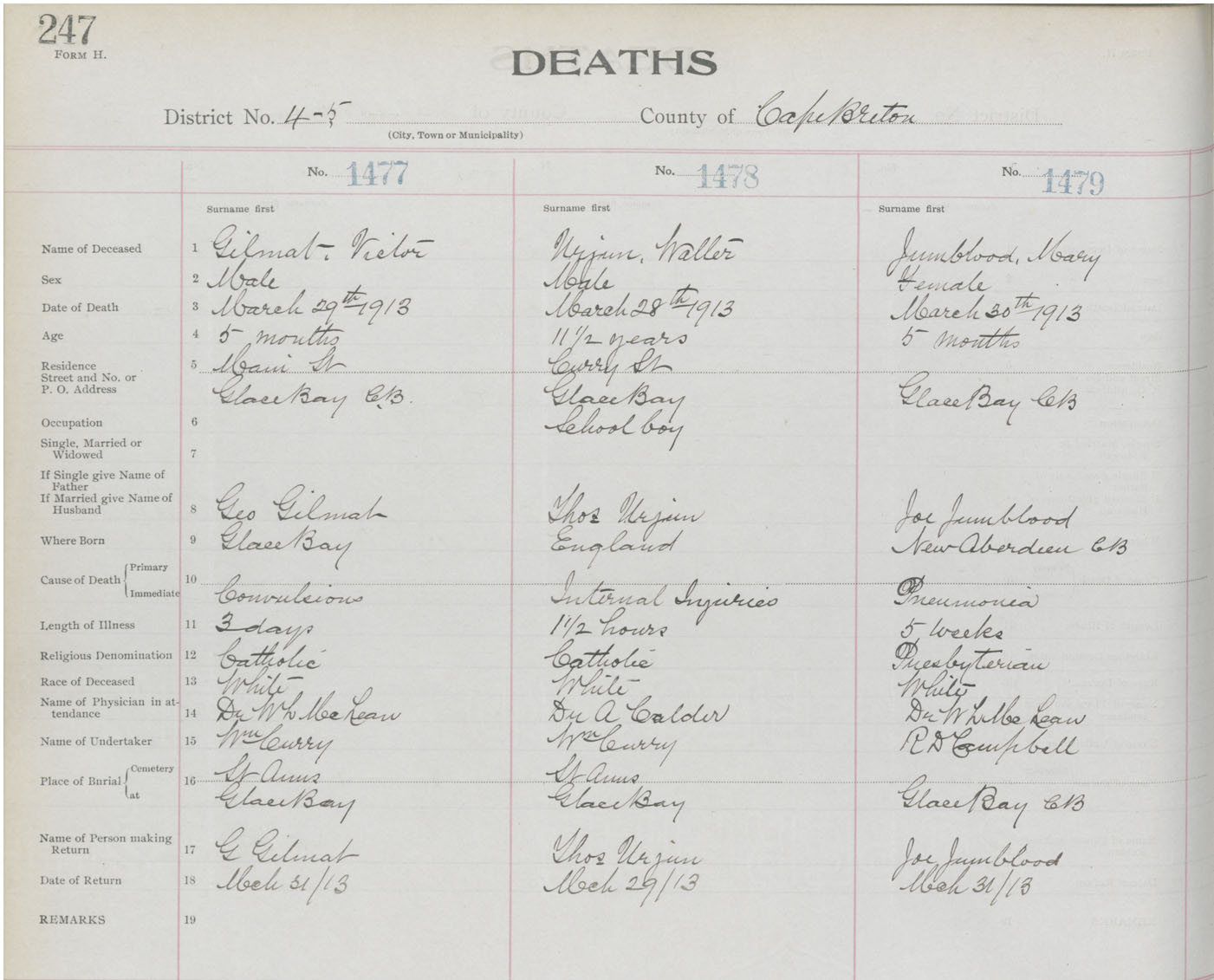 Death Registration: Year: 1913 book: 22 page: 247 number: 1479