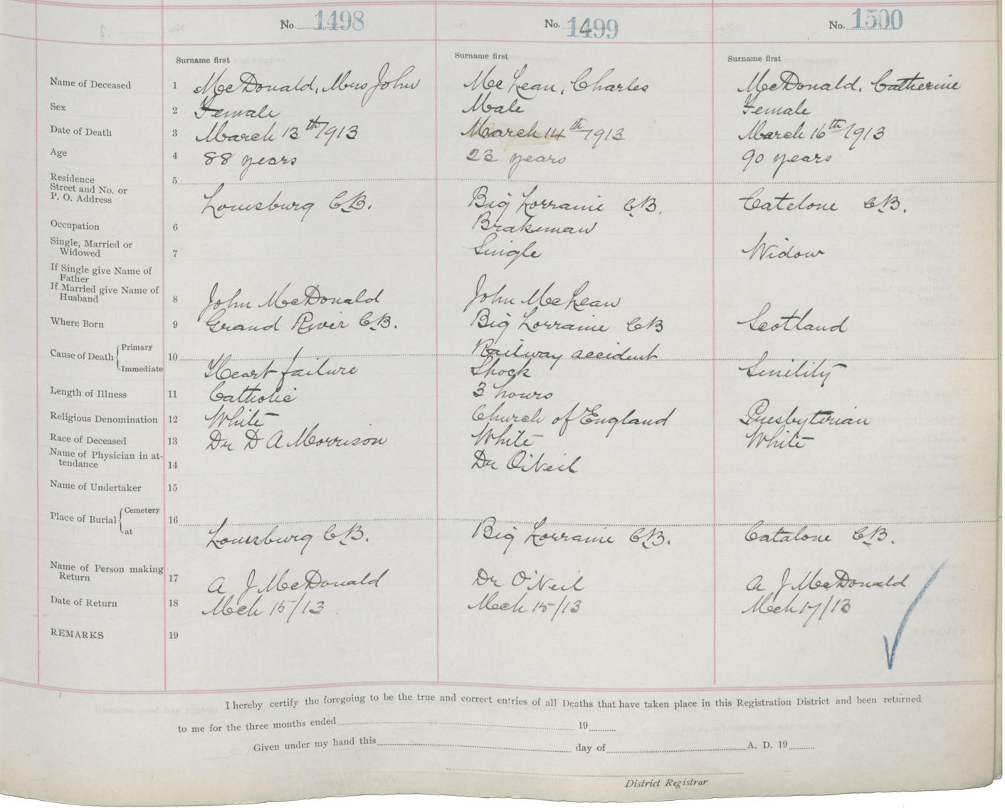 Death Registration: Year: 1913 book: 22 page: 250 number: 1500