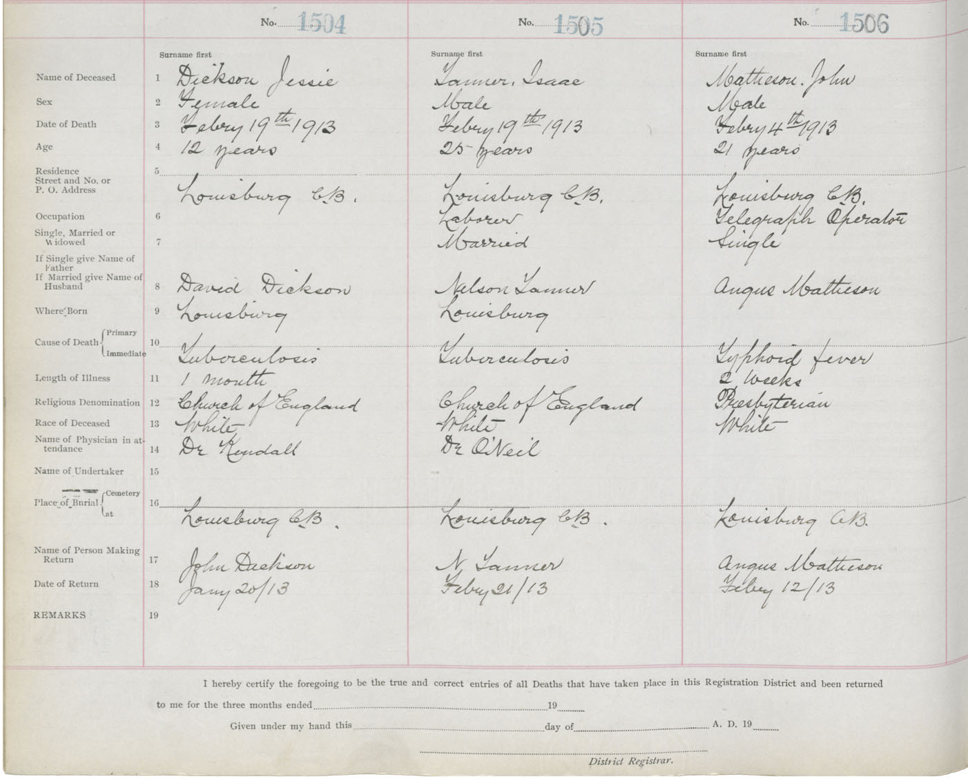 Death Registration: Year: 1913 book: 22 page: 251 number: 1506