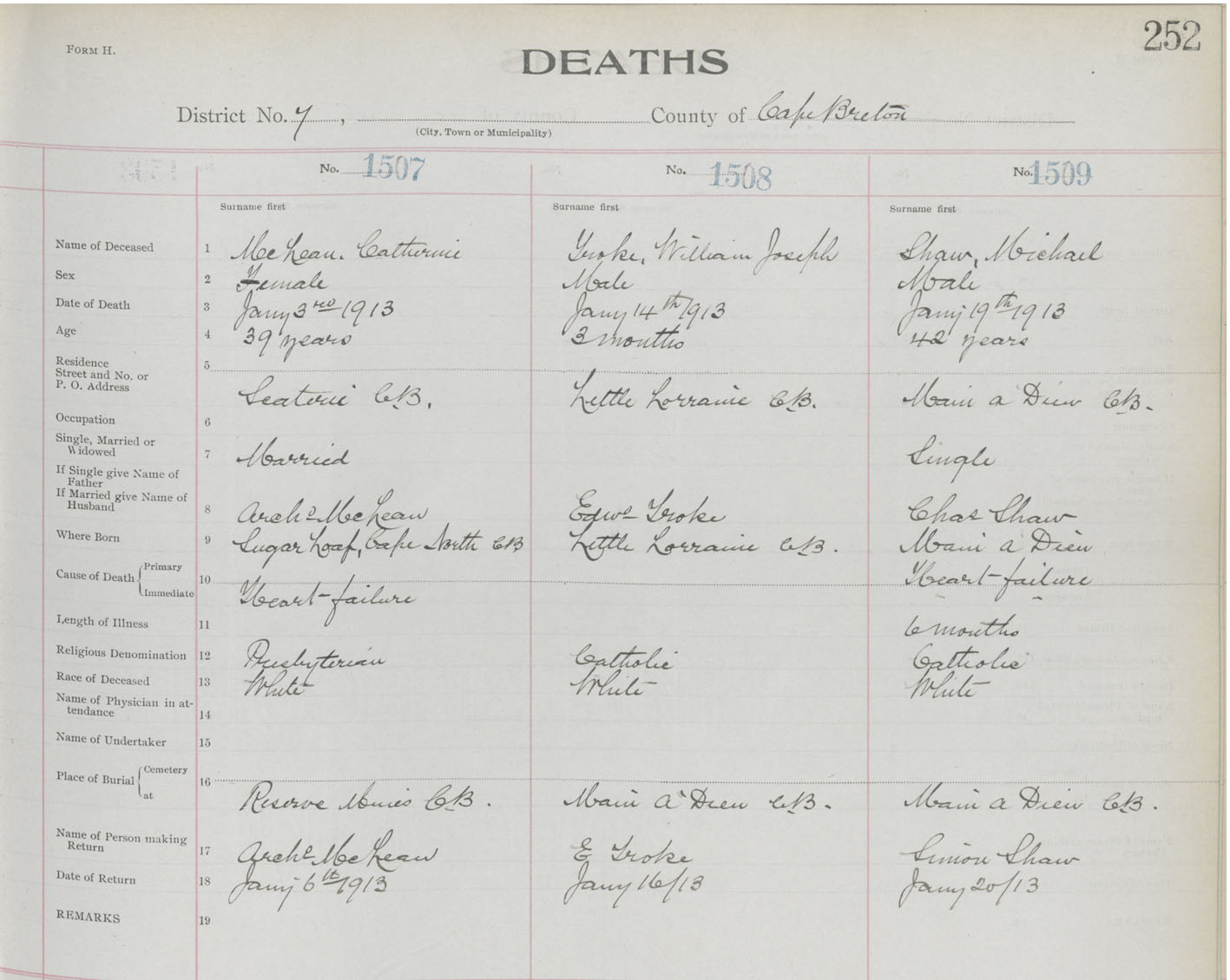 Death Registration: Year: 1913 book: 22 page: 252 number: 1509