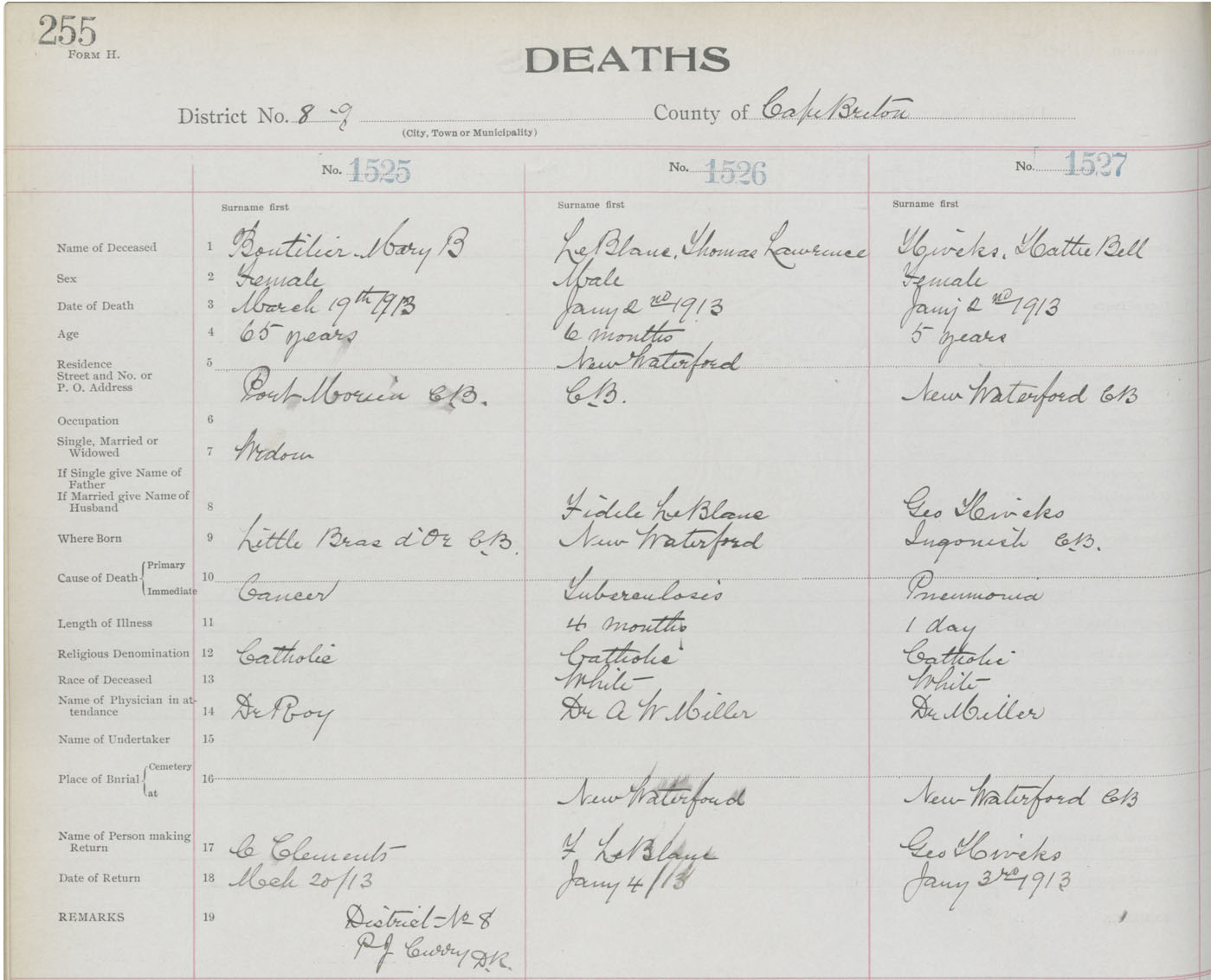 Death Registration: Year: 1913 book: 22 page: 255 number: 1527
