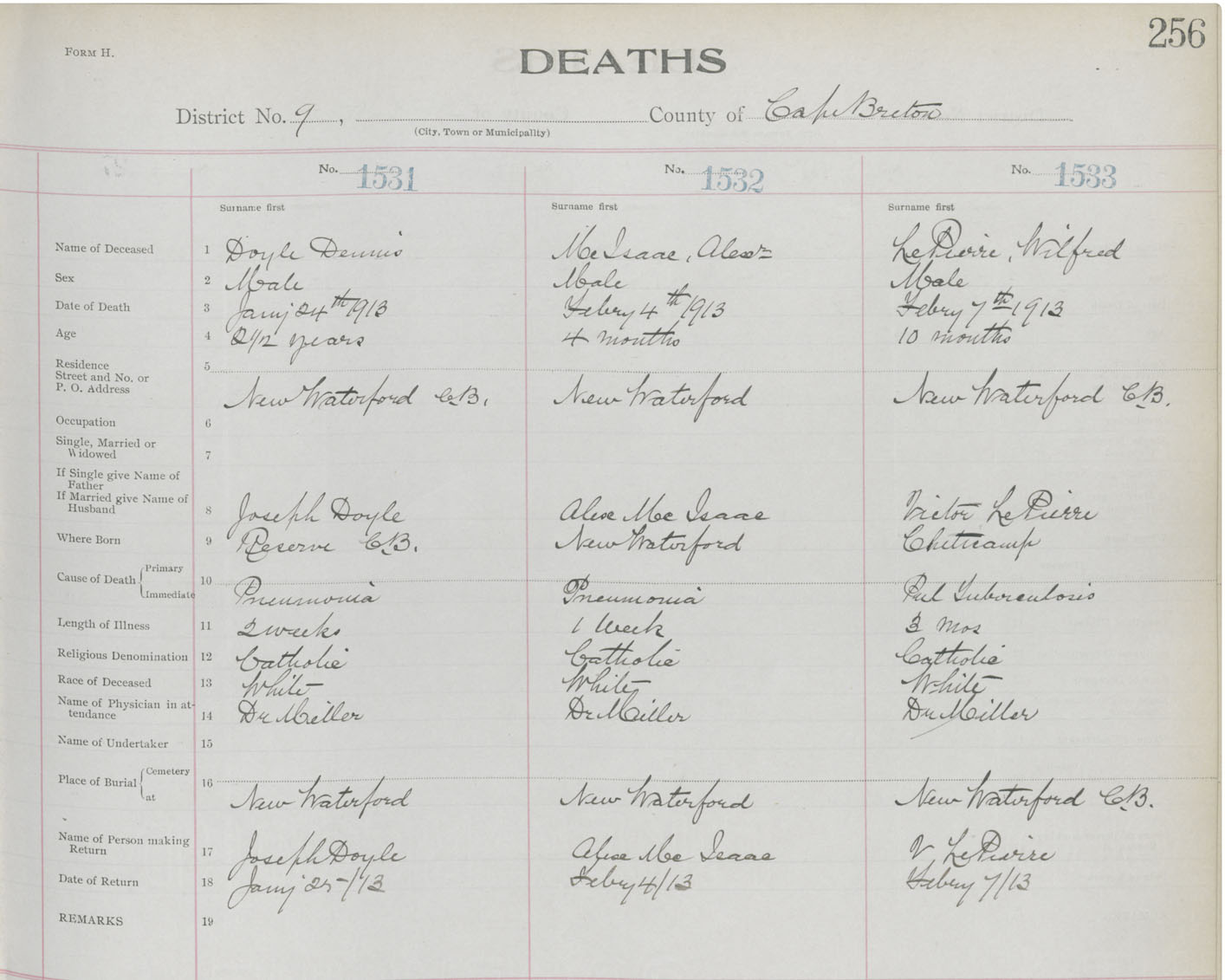 Death Registration: Year: 1913 book: 22 page: 256 number: 1533