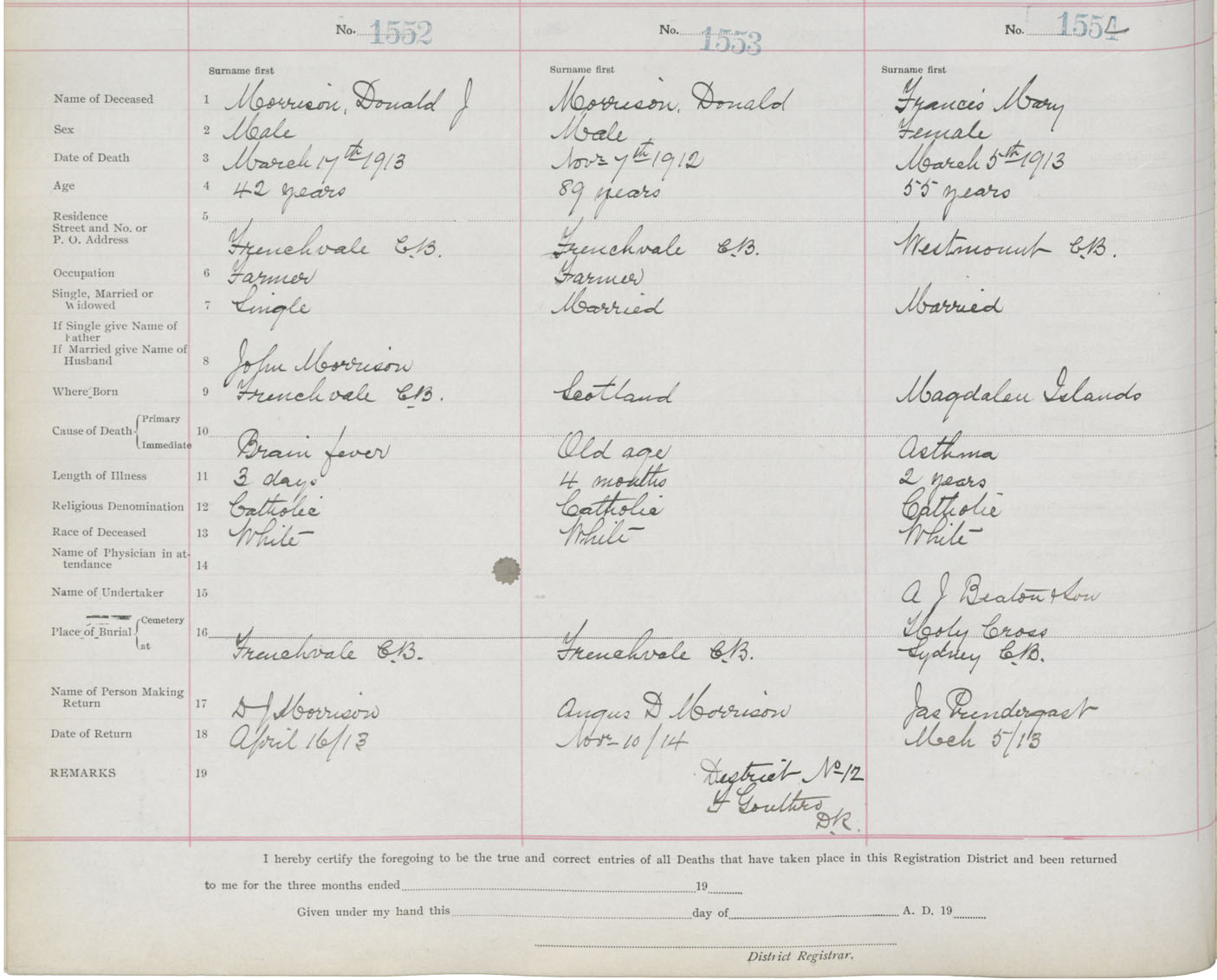 Death Registration: Year: 1913 book: 22 page: 259 number: 1554