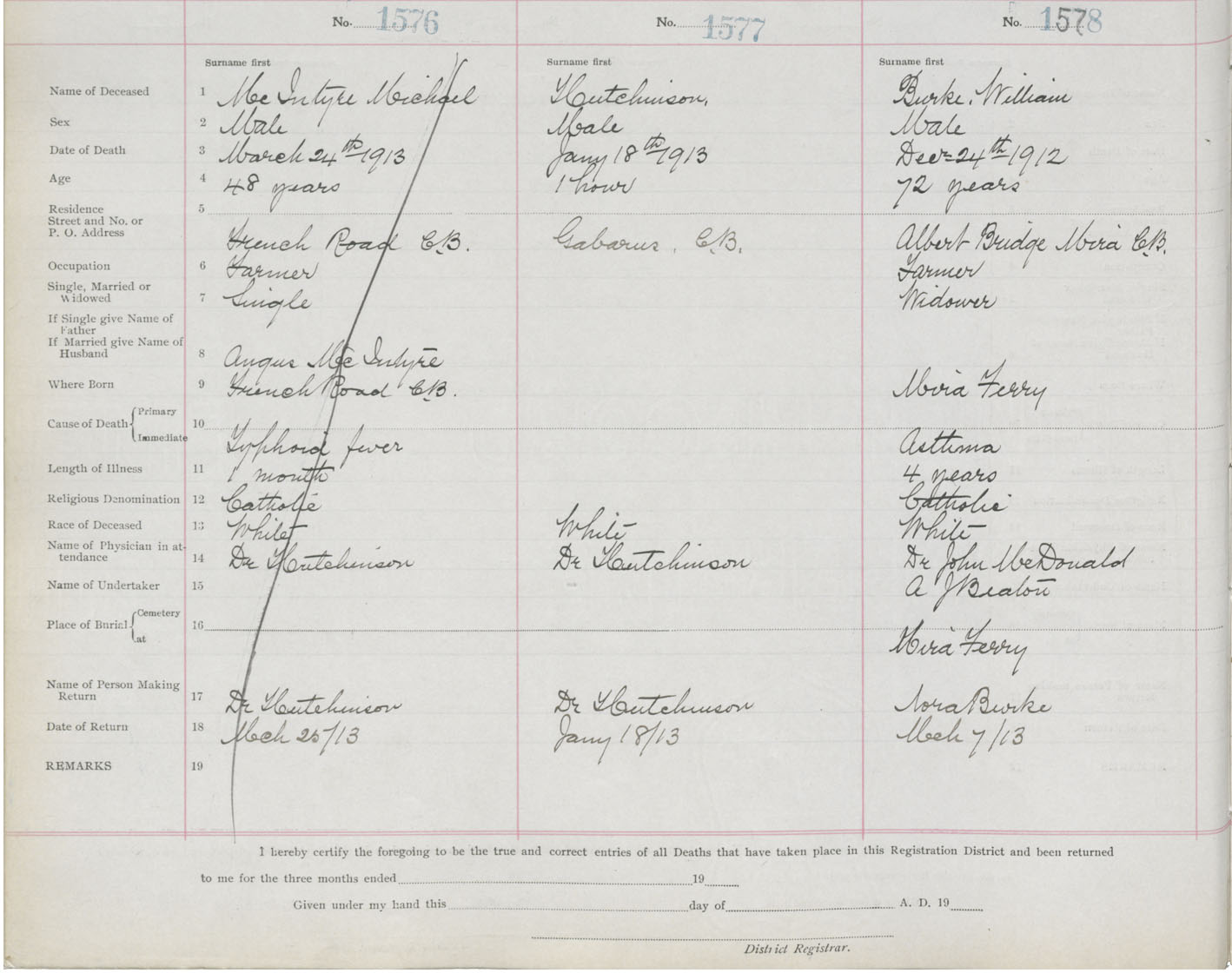 Death Registration: Year: 1913 book: 22 page: 263 number: 1576