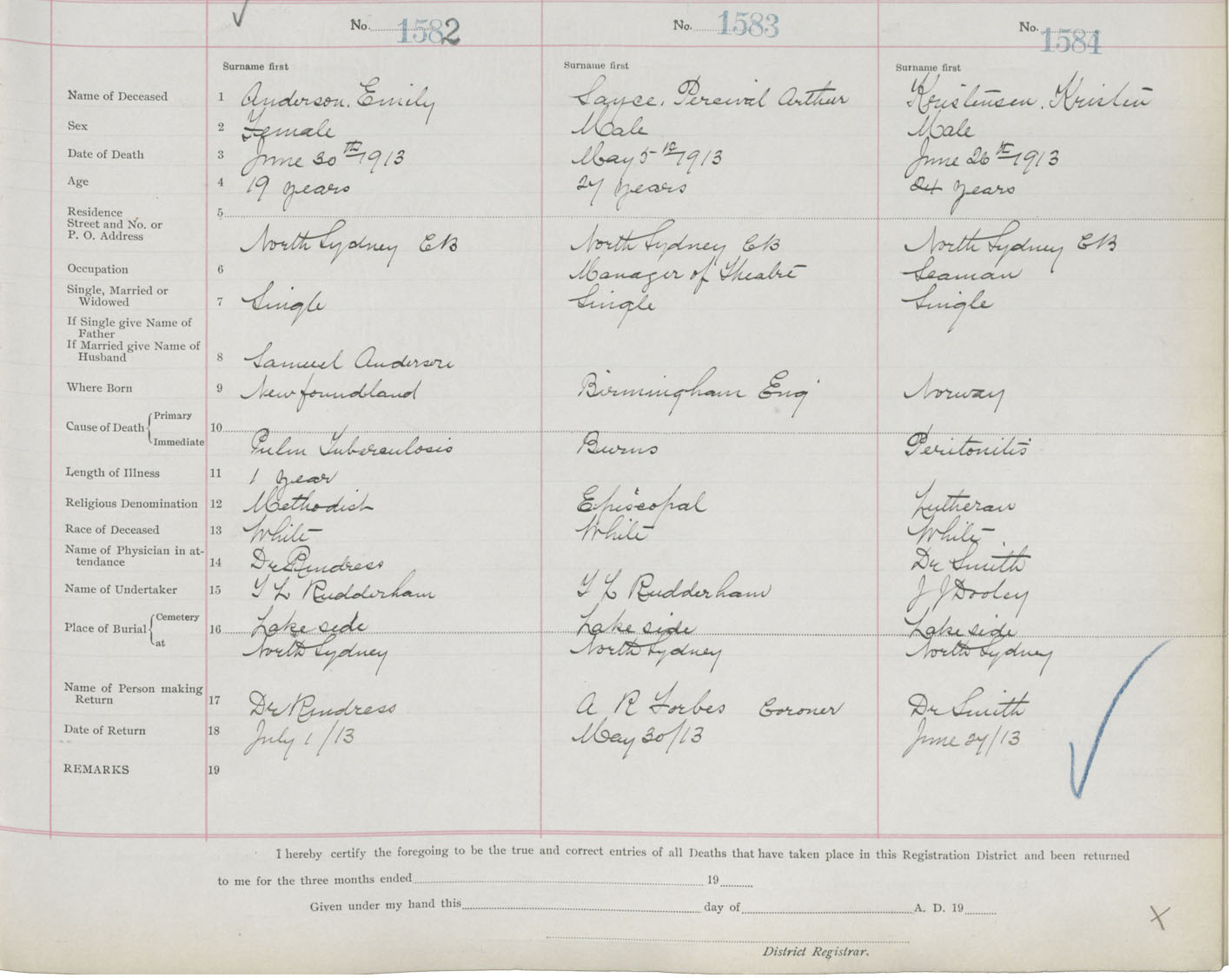 Death Registration: Year: 1913 book: 22 page: 264 number: 1582