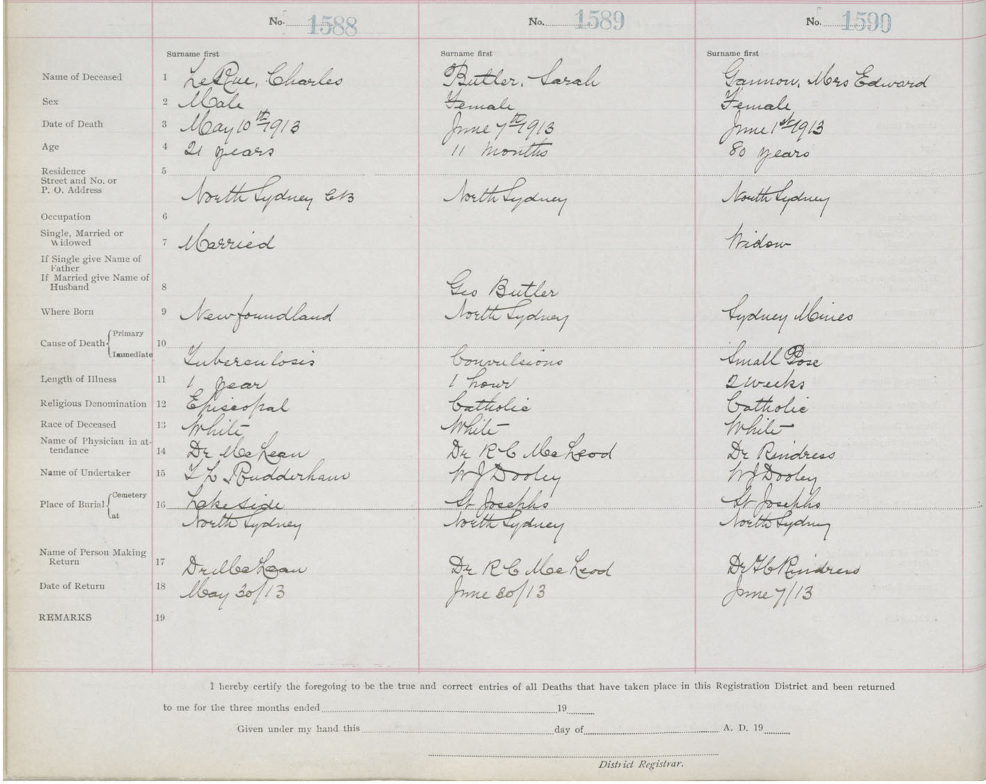 Death Registration: Year: 1913 book: 22 page: 265 number: 1588