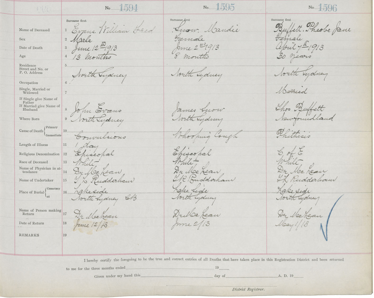 Death Registration: Year: 1913 book: 22 page: 266 number: 1594