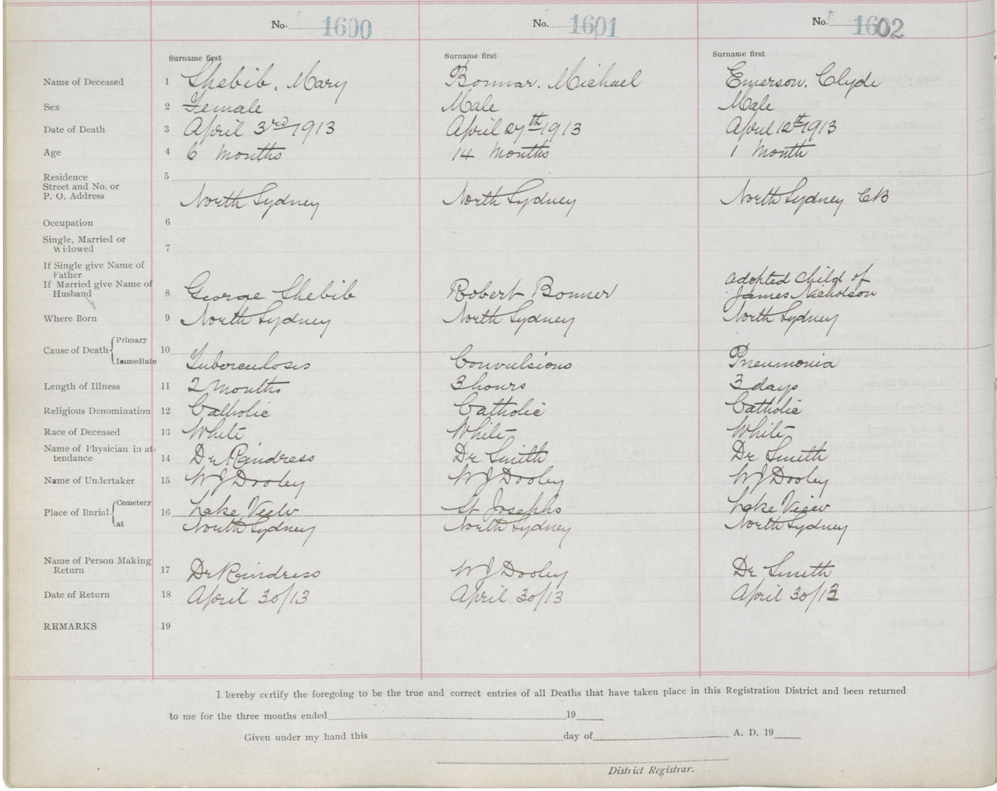 Death Registration: Year: 1913 book: 22 page: 267 number: 1600
