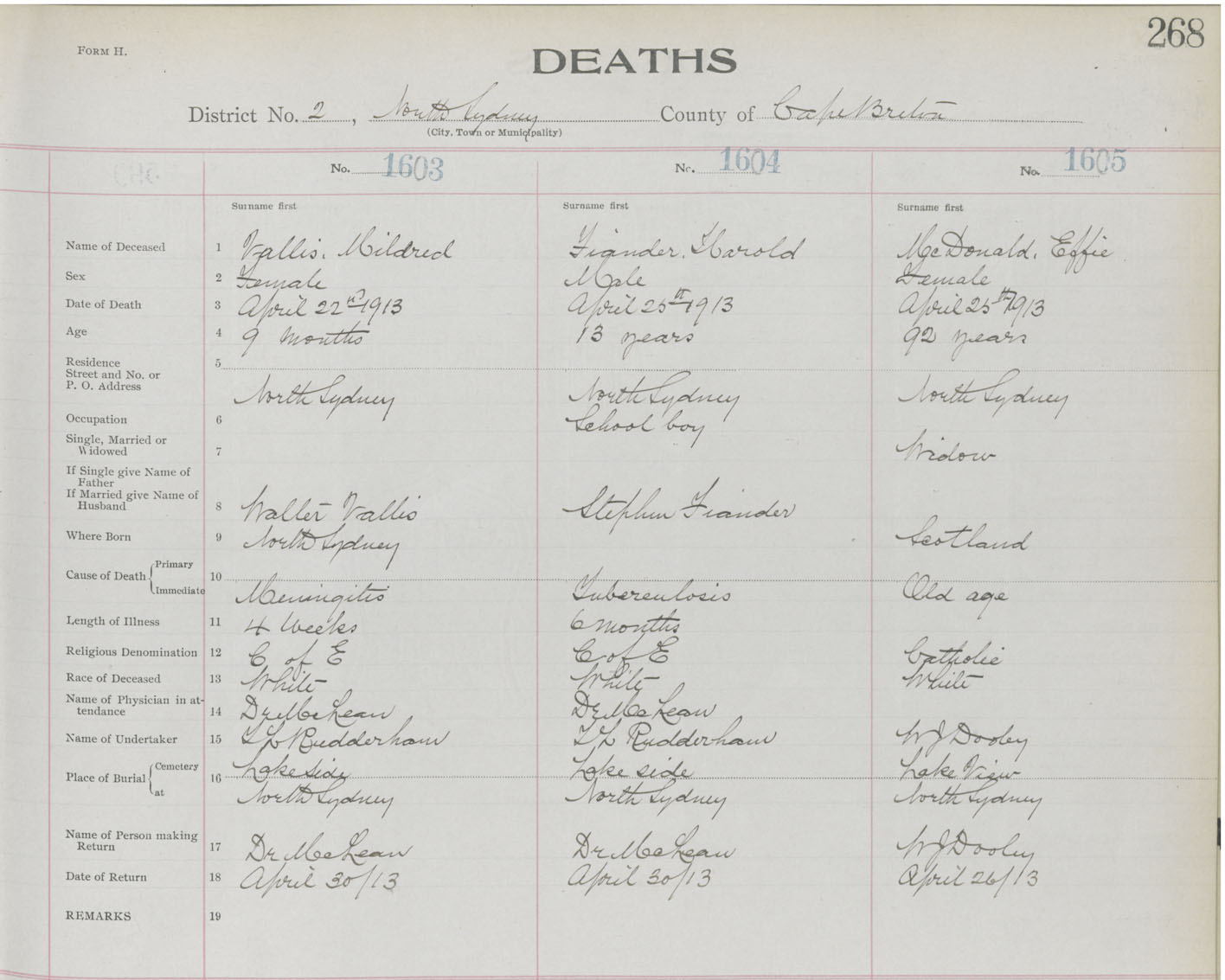 Death Registration: Year: 1913 book: 22 page: 268 number: 1603