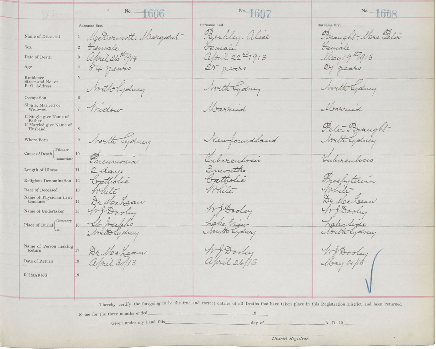 Death Registration: Year: 1913 book: 22 page: 268 number: 1606
