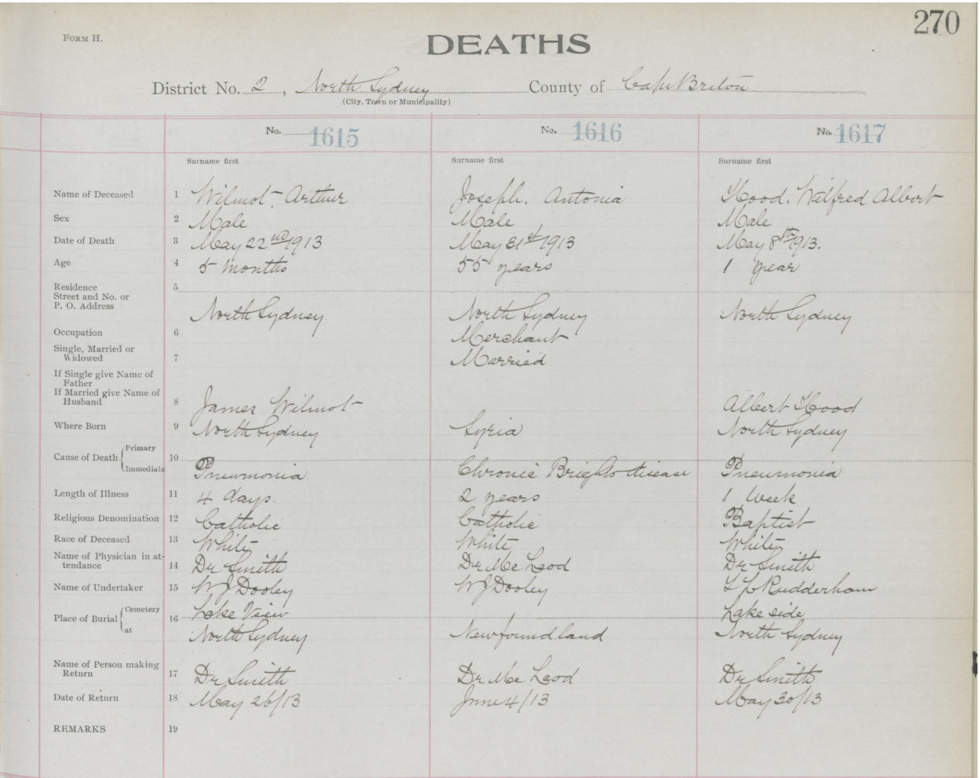 Death Registration: Year: 1913 book: 22 page: 270 number: 1615