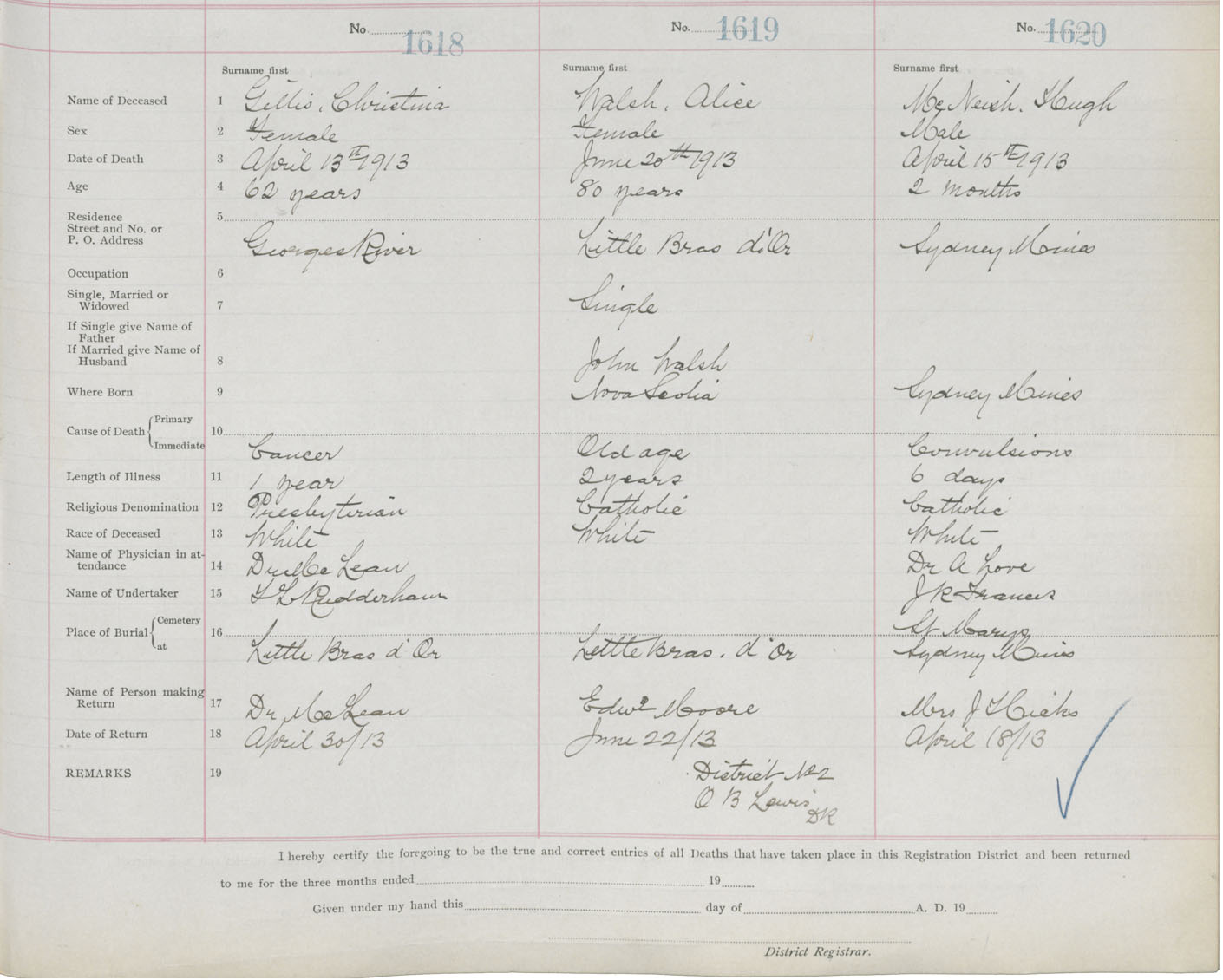 Death Registration: Year: 1913 book: 22 page: 270 number: 1618