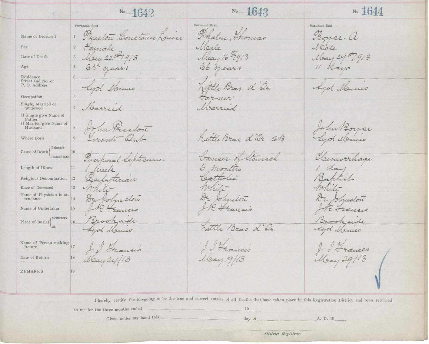 Death Registration: Year: 1913 book: 22 page: 274 number: 1642