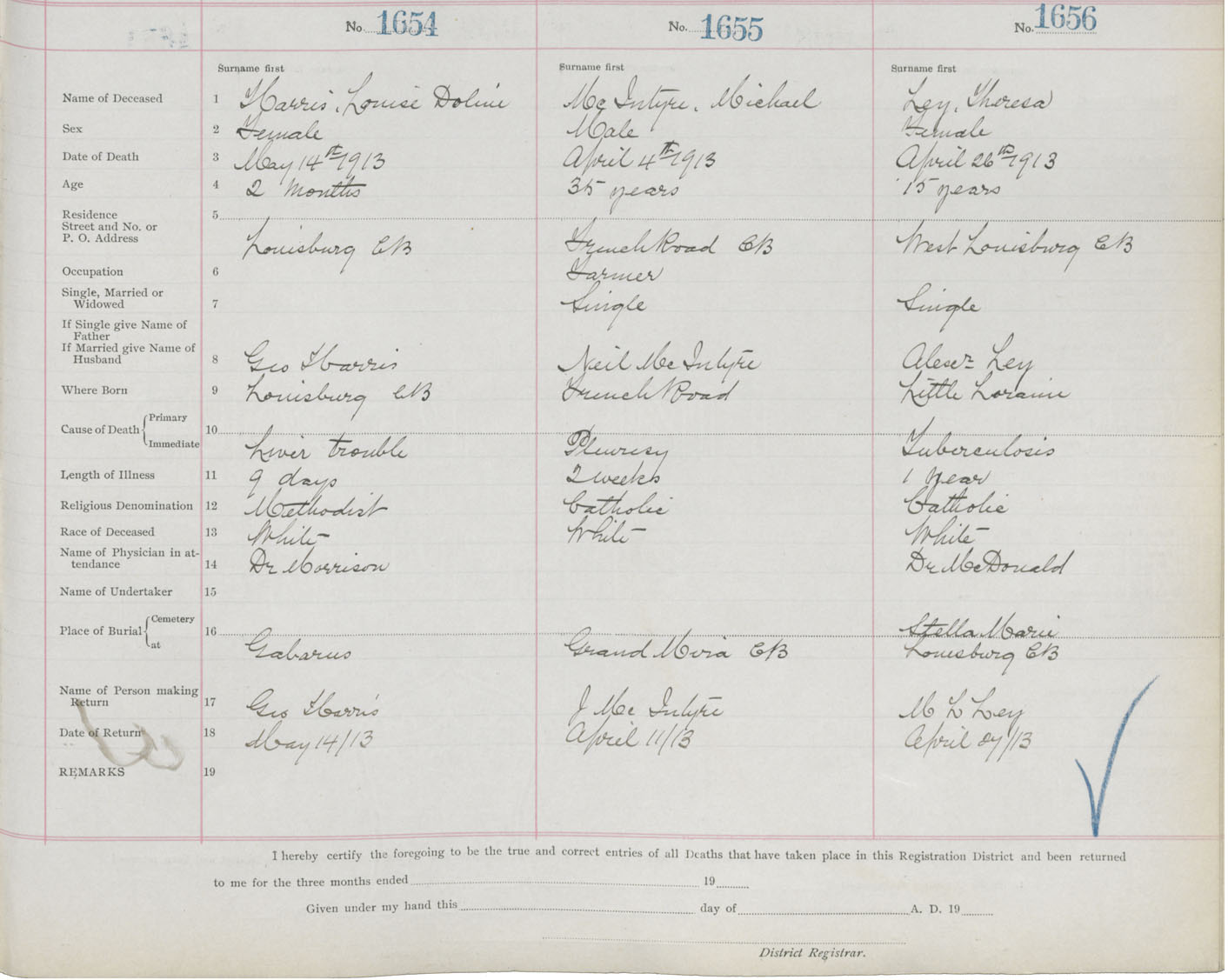 Death Registration: Year: 1913 book: 22 page: 276 number: 1654